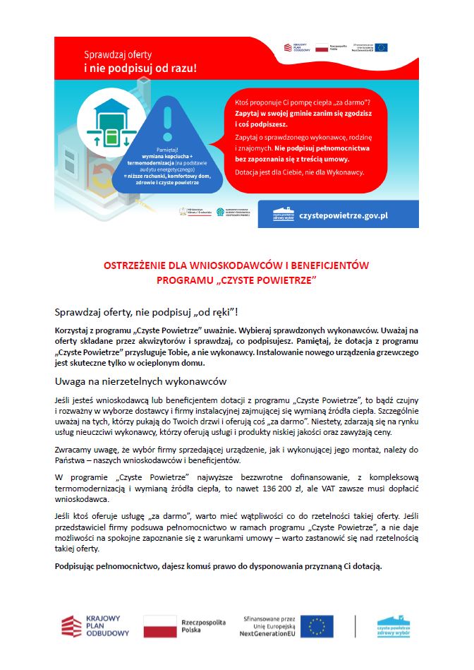 Ostrzeżenie dla wnioskodawców i beneficjentów programu "Czyste powietrze"