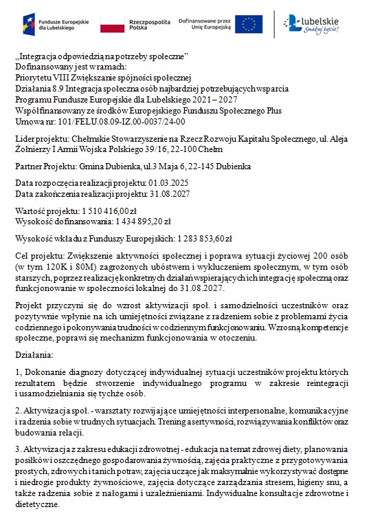 Projekt - "Intergacja odpowiedzią na potrzeby społeczne"
