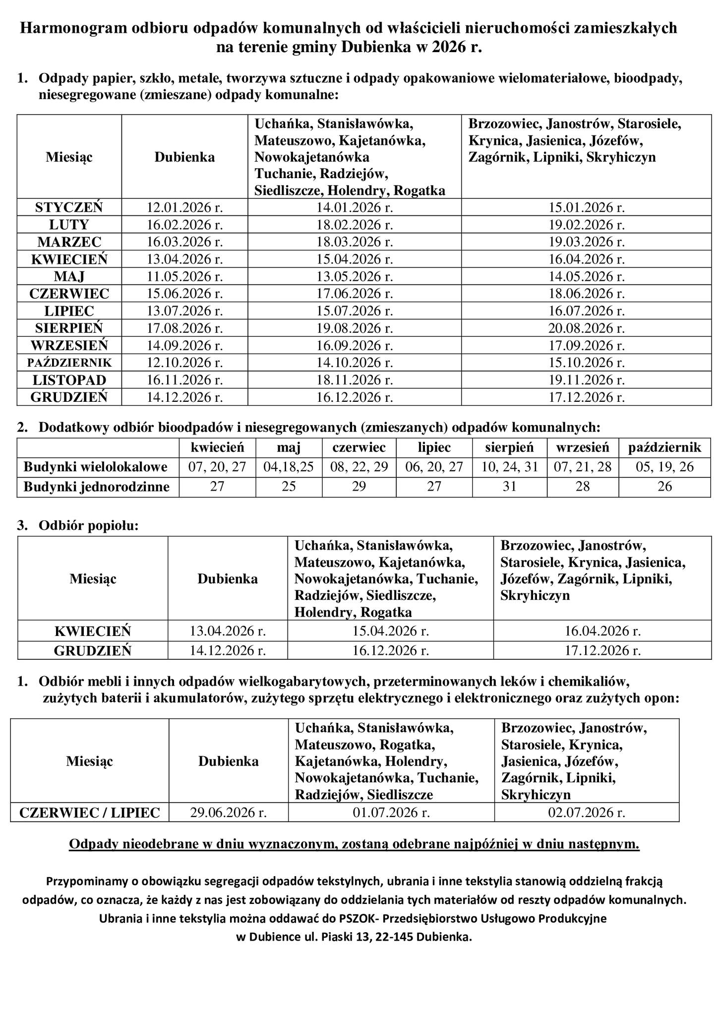 harmonogram odbioru śmieci